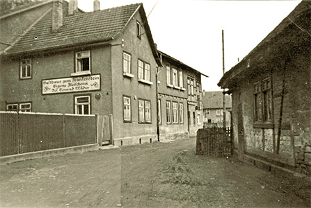 An dieser Stelle stand das Gasthaus „Zum Frankenstein“. Die Gaststätte umfasste ein Gastzimmer und ein Vereinszimmer im Erdgeschoss, einen Saal mit Bühne, Bühnenzimmer und Garderobe im Obergeschoss.